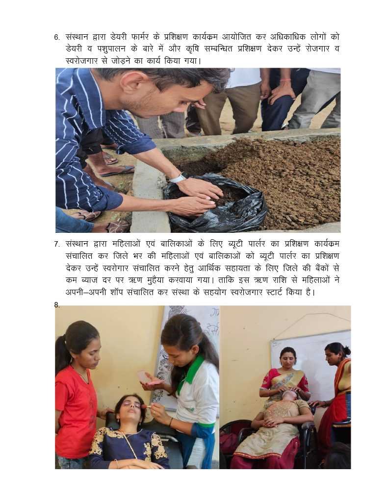 10. बेरोजगारी उन्मूलन एवं स्वरोजगार हेतु समाज के कमजोर वर्ग को प्रशिक्षण देना।