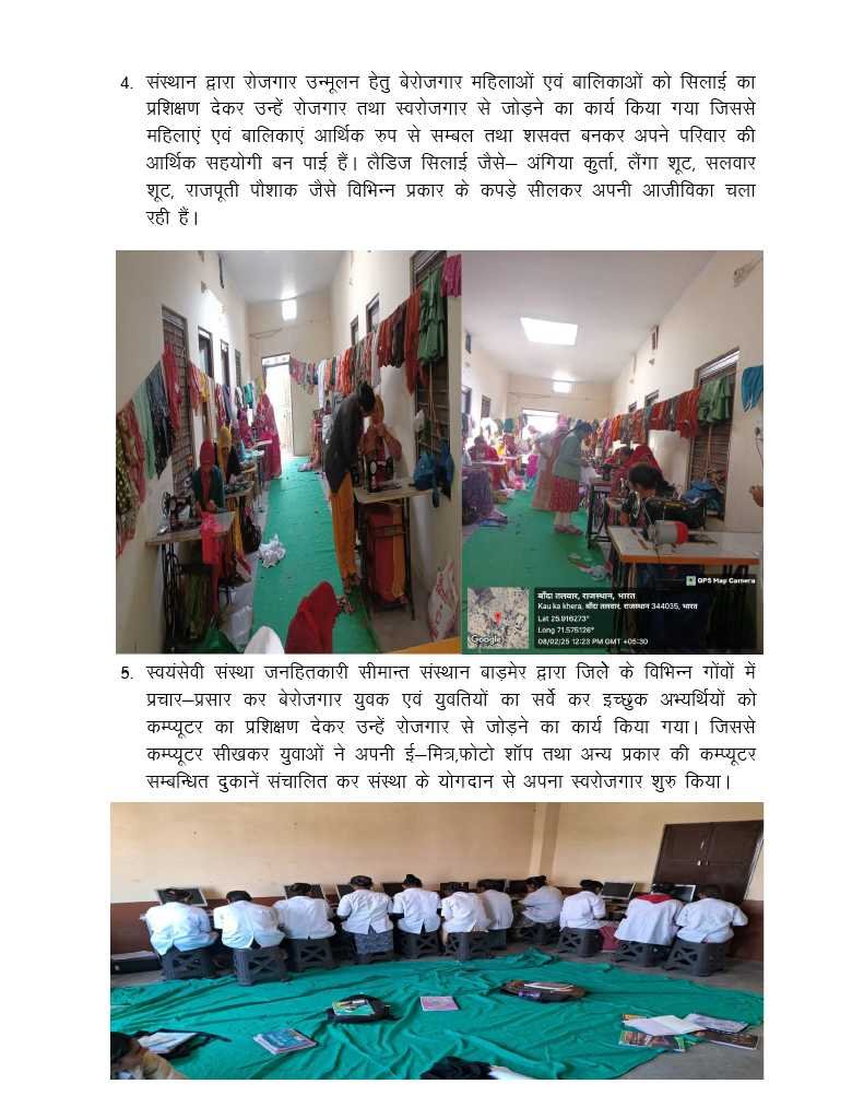 10. बेरोजगारी उन्मूलन एवं स्वरोजगार हेतु समाज के कमजोर वर्ग को प्रशिक्षण देना।