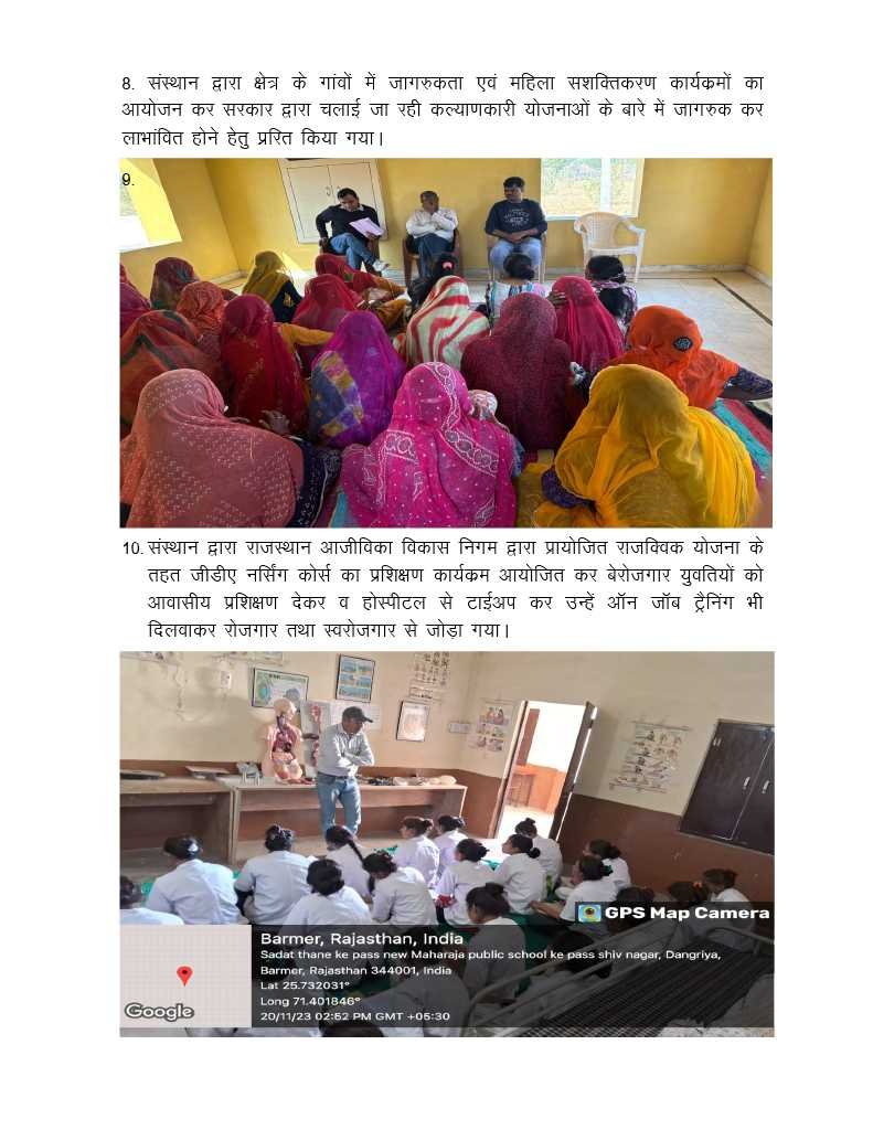 6. बालश्रम, तस्करी, बाल विवाह, बाल शोषण, एचआईवी एड्स रोकथाम, महिला हिंसा, महिला सशक्तिकरण, बालिकाओं की शिक्षा में वृद्धि के लिए जागरूकता पैदा करना।